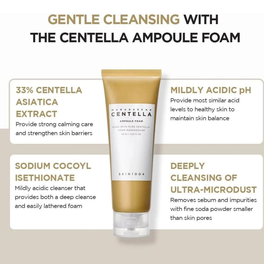 رغوة أمبول مدغشقر سينتيلا من سكين1004 هي رغوة تنظيف فاخرة تحتوي على خلاصة نبات سينتيلا أسiatica، المعروف بخصائصه المهدئة والمضادة للالتهابات. تساعد هذه الرغوة على تنظيف البشرة بعمق وإزالة الشوائب دون التسبب في جفافها، مما يجعلها مثالية للبشرة الحساسة والدهنية. تركيبة خفيفة تنظف البشرة بلطف وتعزز إشراقتها وحيويتها.